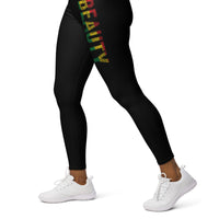 Super soft, stretchy, and comfortable, these yoga leggings ensure your next session is the best one yet! They feature a flattering fit that moves with you, providing support in any activity. Pair them with the BEAUTY Hat or the BEAUTY Shirt to complete your look and showcase your pride. Embrace your beauty, strength, and cultural heritage with confidence—order your pair today!