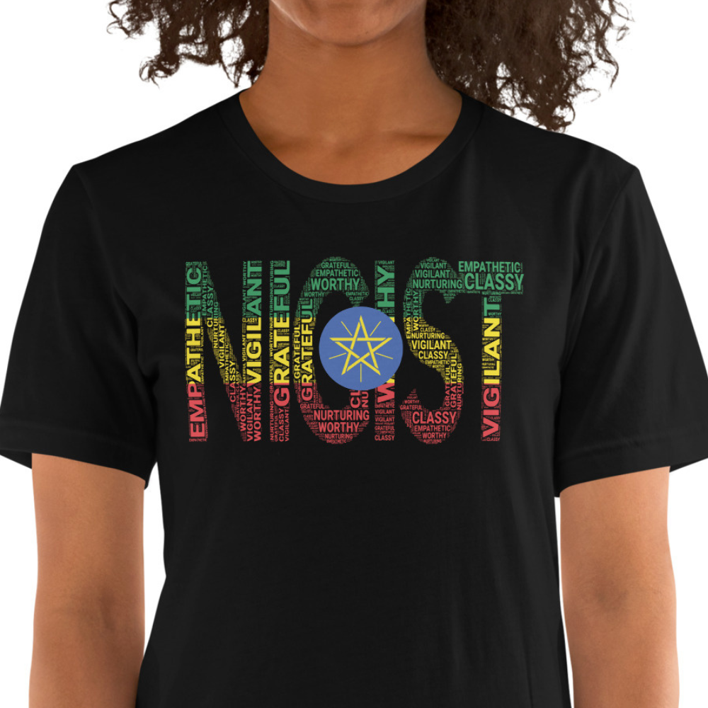 Celebrate your heritage and strength with the Ethiopia Nigist Unisex T-Shirt. The word "Nigist" means queen in Amharic, one of Ethiopia’s primary languages, symbolizing power and elegance. You’ll love the vibrant NIGIST Word Cluster design inspired by Ethiopian heritage, colored in the modern Ethiopian flag. The cluster is filled with meaningful words like Worthy, Grateful, Classy, Nurturing, Vigilant, and Empathetic, honoring Ethiopia’s rich cultural roots and your resilience. Made from 100% combed cotton, this t-shirt is incredibly soft and more durable than regular cotton shirts. Its relaxed fit and comfortable cut make it ideal for everyday wear, whether you're going out or layering with other Ethiopian clothing pieces. It’s the perfect Ethiopian shirt to pair with jeans or styles from your Ethiopian clothing collection. Get yours now and celebrate your cultural pride with bold style and unbeatable comfort in every movement.