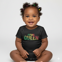 Designed specifically for Black infant girls. This stylish onesie features a striking design that highlights the empowering word "FUTURE KING," filled with uplifting terms like Worthy, Vigilant, Empathetic, Nurturing, Classy, Grateful—qualities that reflect the essence of who you are. The vibrant Pan-African colors of red, yellow, and green enhance the design, with red symbolizing resilience and freedom, yellow representing wealth and prosperity, and green signifying growth and harmony—values that deeply resonate within our culture.