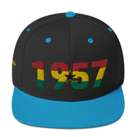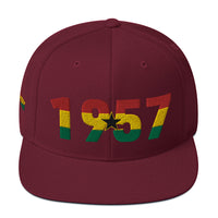 Celebrate Ghanaian pride and your uniqueness with this premium embroidered snapback hat! Featuring "1957," the significant year of Ghana's independence, this stylish cap is beautifully embroidered with the vibrant colors and emblem of Ghana. Located on the west coast of Africa, Ghana is renowned for its rich history and cultural heritage, and this hat is a perfect way to showcase your connection to this remarkable nation.