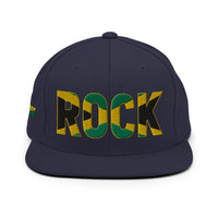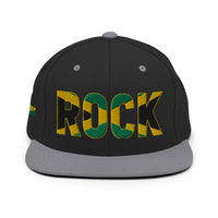 Celebrate your Jamaican pride and royalty with the stunning ROCK Inspired Embroidery Snapback Hat. Featuring elegant lettering and detailed embroidery inspired by the Jamaica national flag, this stylish snapback makes a powerful statement while maintaining a sophisticated and trendy look. Designed to honor Jamaican heritage, this hat is the perfect addition to your Jamaican hat collection and a beautiful complement to your Ethiopian clothing.  It also pairs well with the Jamaica leggings or the Jamaica shirt. Showcase your cultural pride with a bold, fashionable accessory that combines style and meaning.